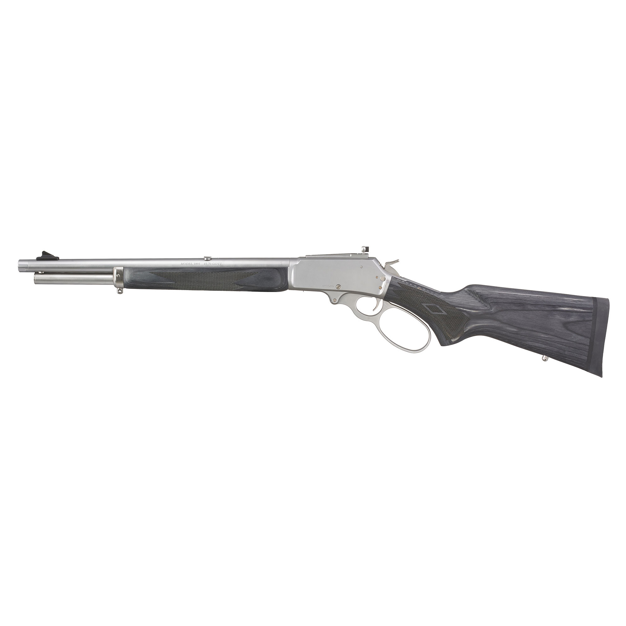 Marlin, 1895 Trapper, Large Loop, Lever Action Rifle, 45-70 Government, 16.5″ Threaded Barrel, 11/16X24″ Pattern, Satin Finish, Silver, Black Laminate Stock and Forend, Adjustable Skinner Sights, Crossbolt Safety, 5 Rounds, Right Hand